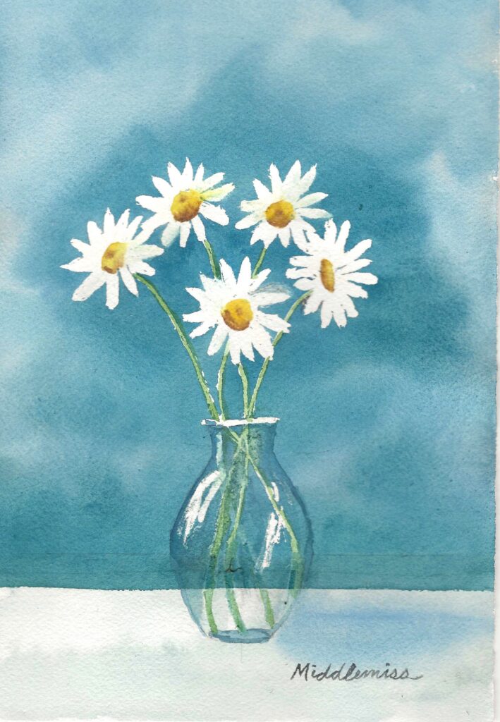 Join Al Middlemiss for this one-session watercolor workshop that celebrates the blooms of spring! Students will learn the basics of watercolor painting while focusing on daisies as the subject matter. At the end of the workshop, students will leave with a finished botanical painting to brighten their homes! This workshop is perfect for students wanting to try their hand at watercolor for the first time, or who have some experience but have a particular interest in painting flowers.